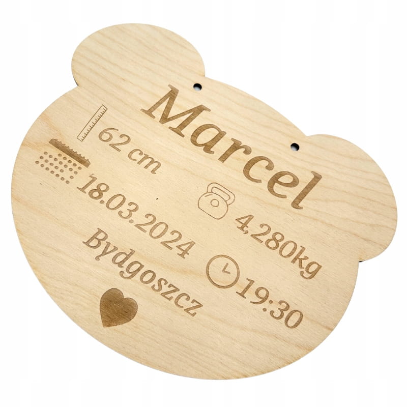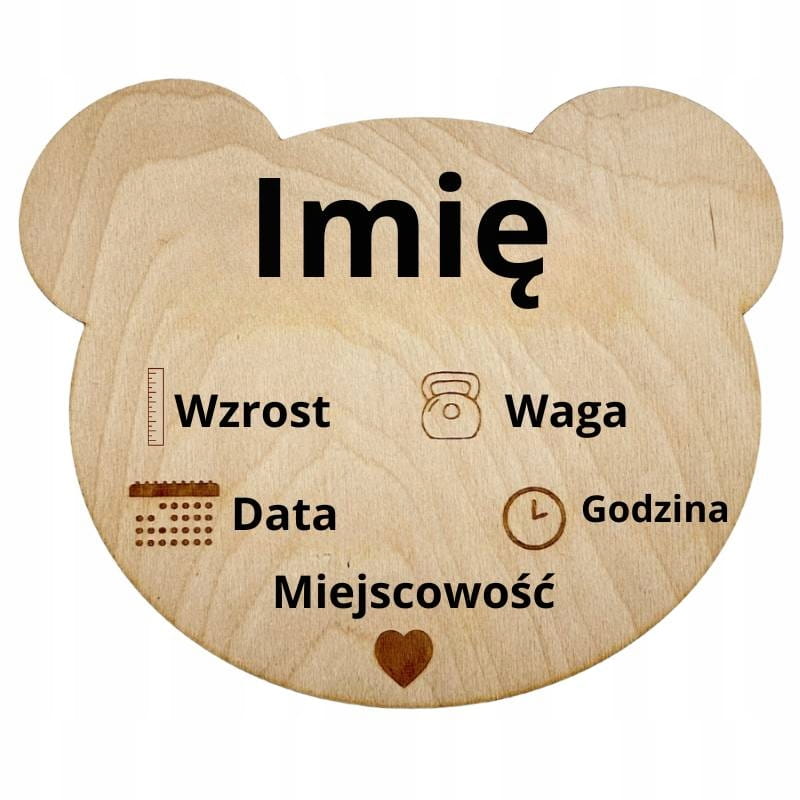 DREWNIANA METRYCZKA DZIECIĘCIA MIŚ DZIECKO NARODZINY PERSONALIZOWANA