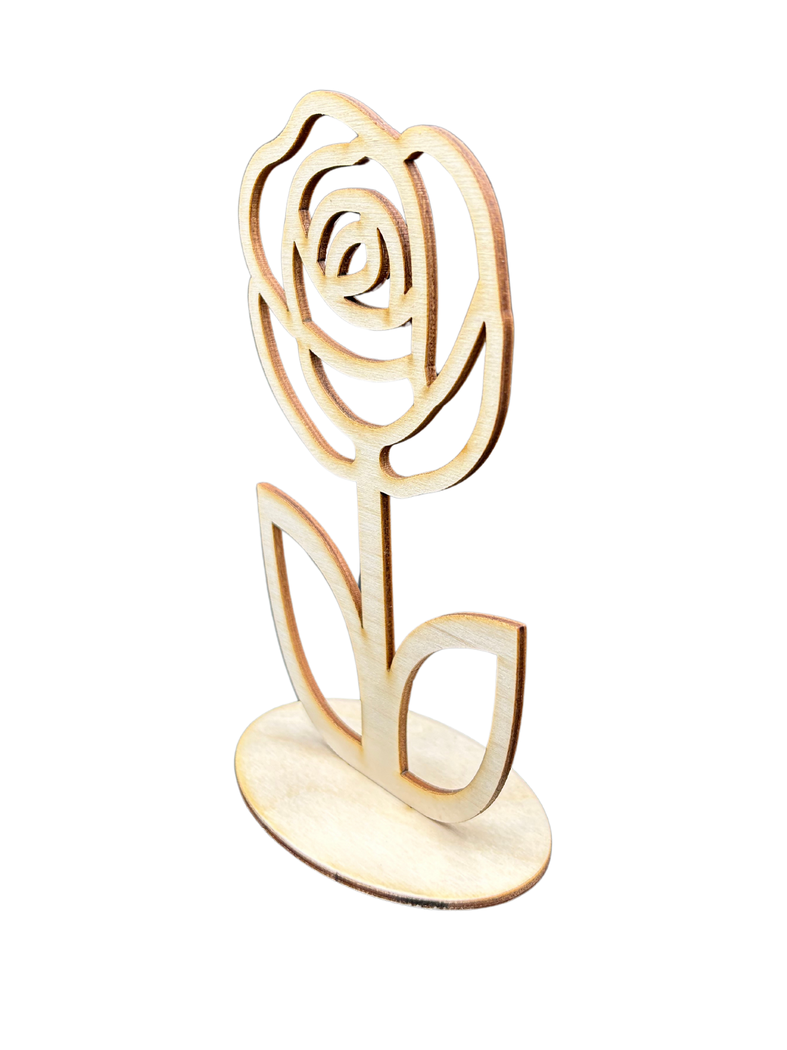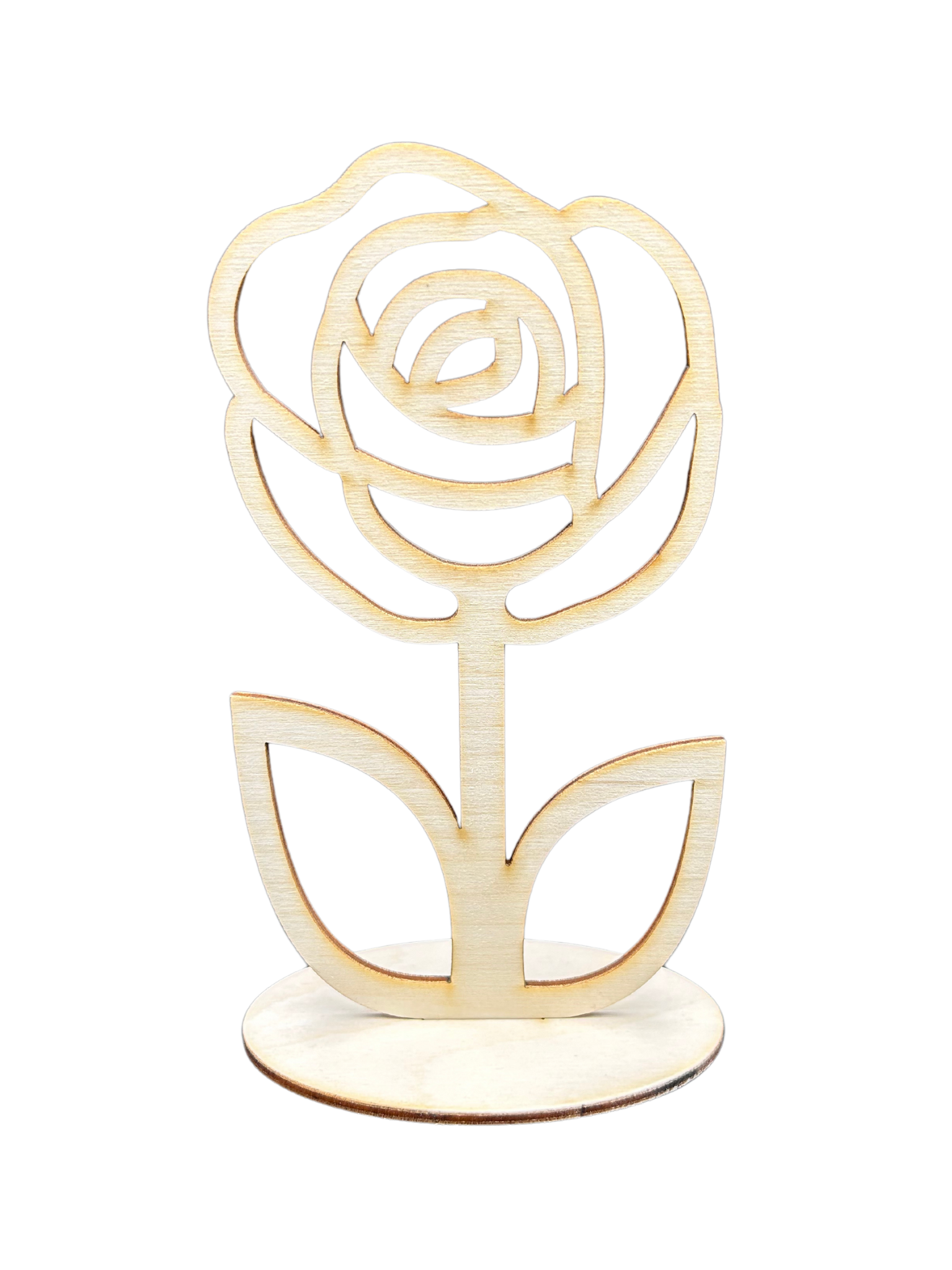 Drewniany kwiatek kwiat stojący na podstawce prezent róża decoupage 17,5 cm
