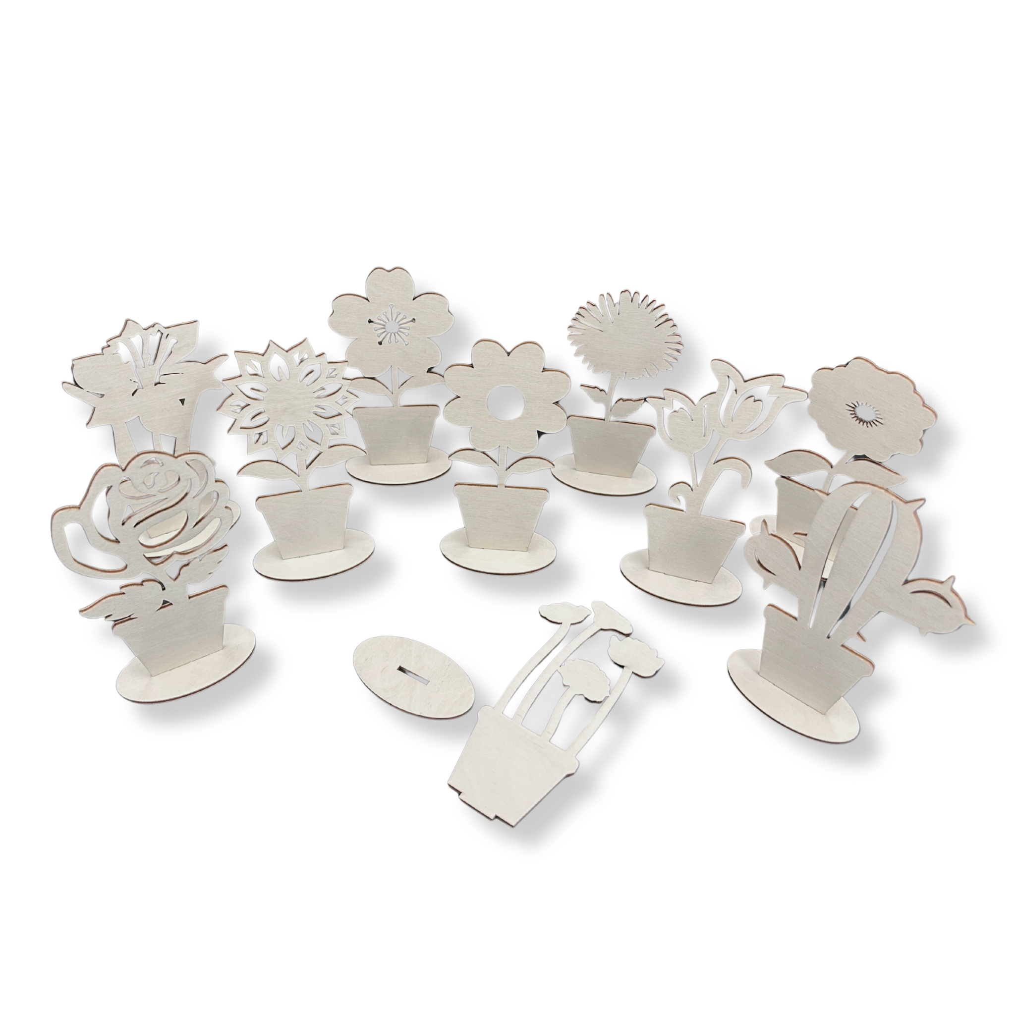 Kwiatki drewniane do ozdabiania 10 SZTUK 15 cm