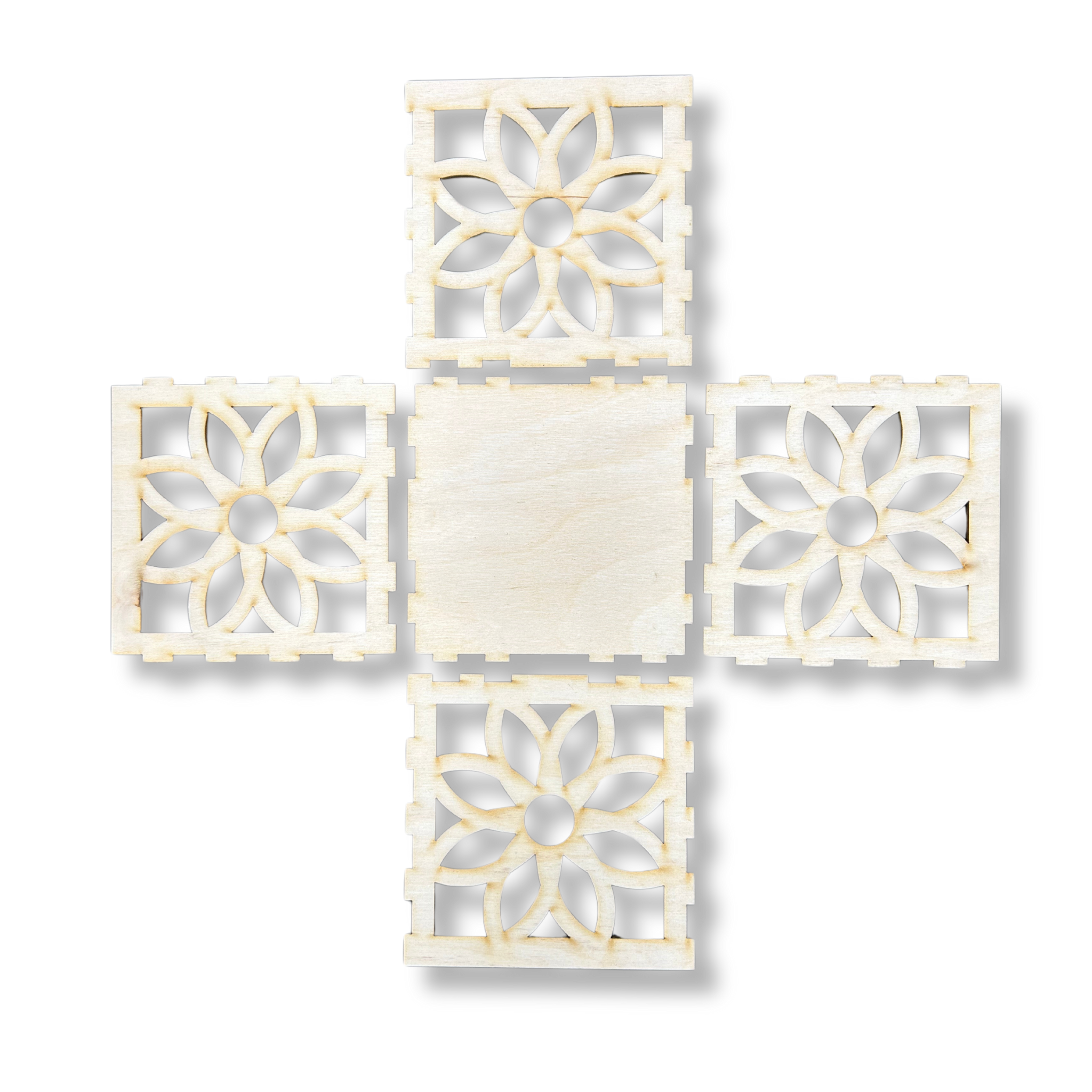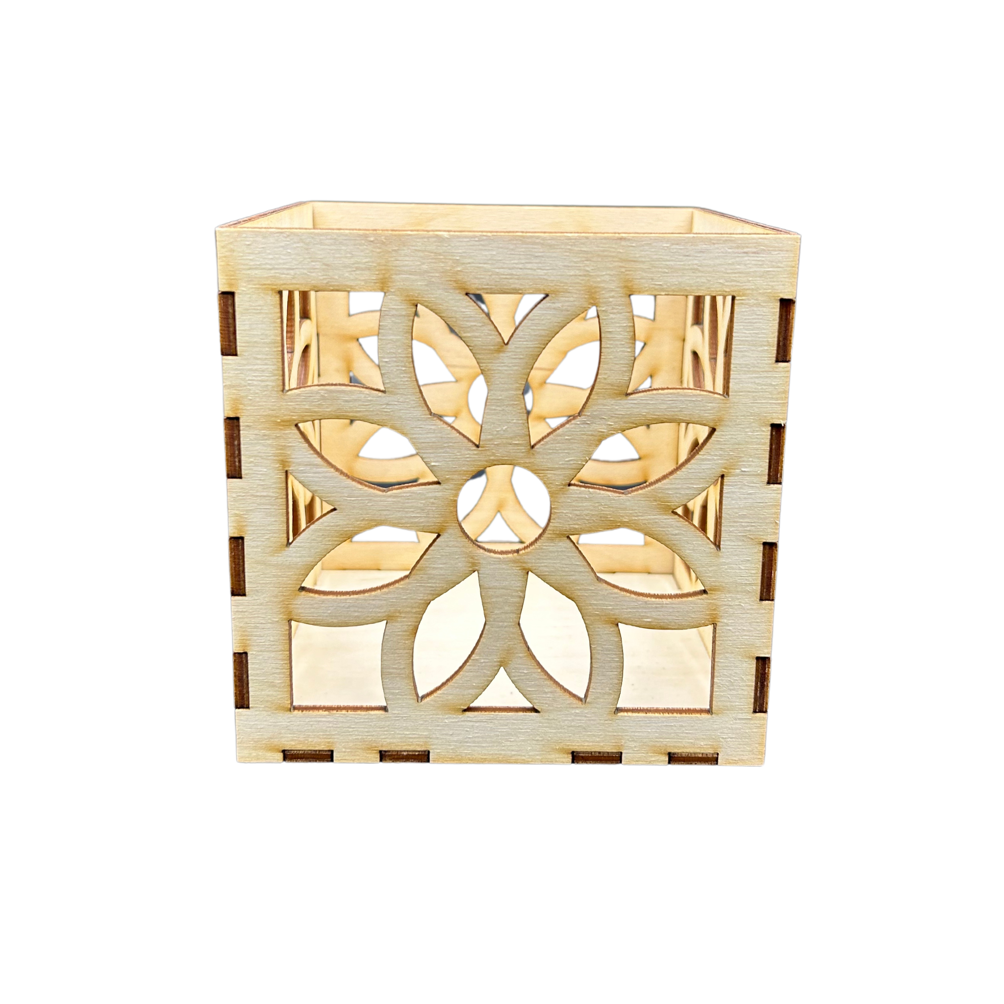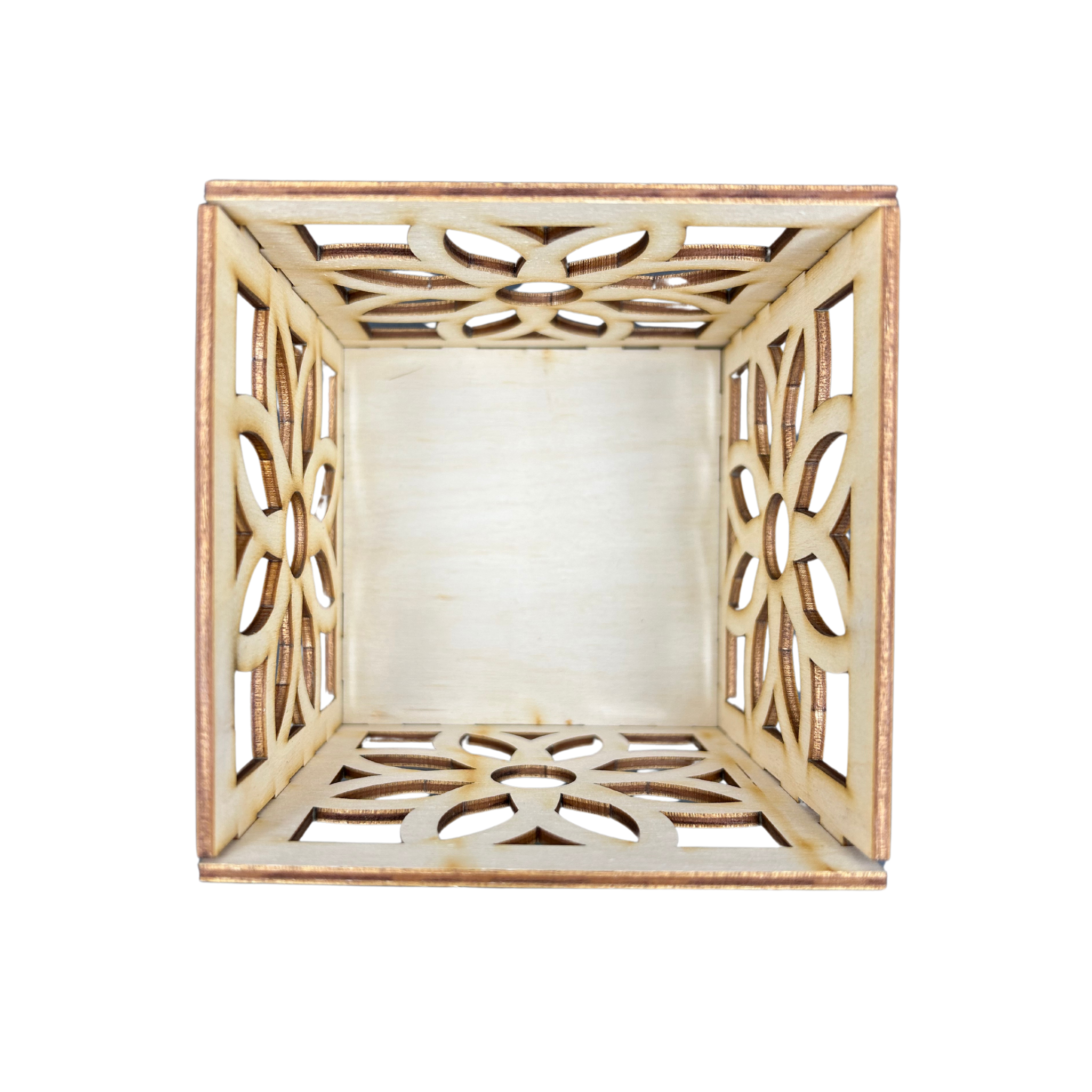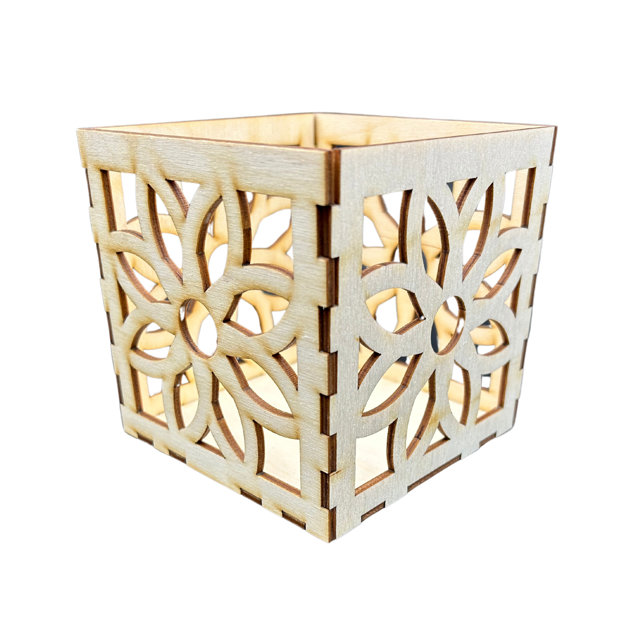 Lampion drewniany latarenka ze sklejki decoupage ozdoba świecznik 11cm