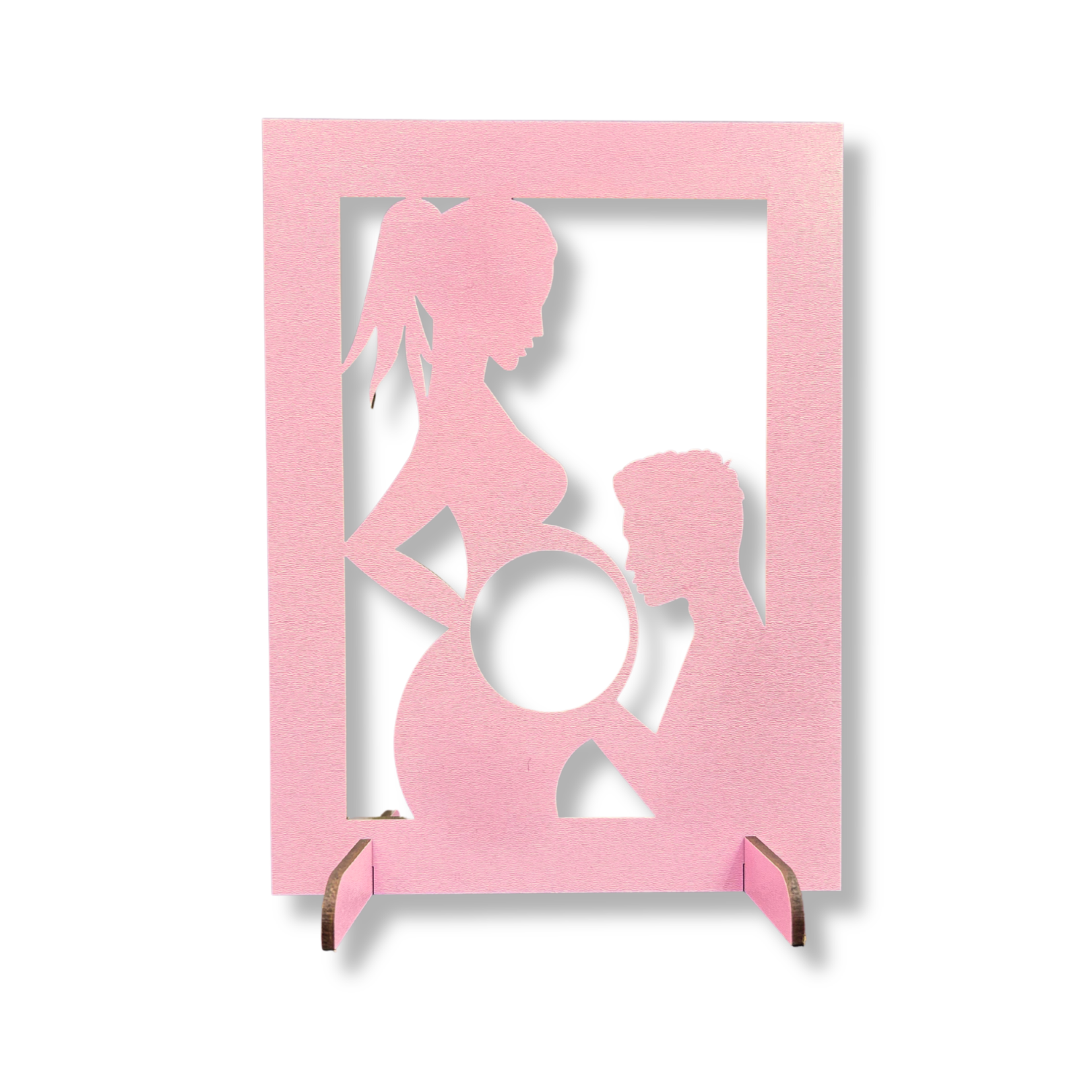 Drewniana ramka na zdjęcie USG wykonana z płyty hdf jednostronnie w kolorze RÓŻOWYM cięta laserowo wymiary: 15x20 cm wymiar miejsca na zdjęcie: 4,2 cm do ramki dołączone są podstawki, które umożliwiają jej postawienie