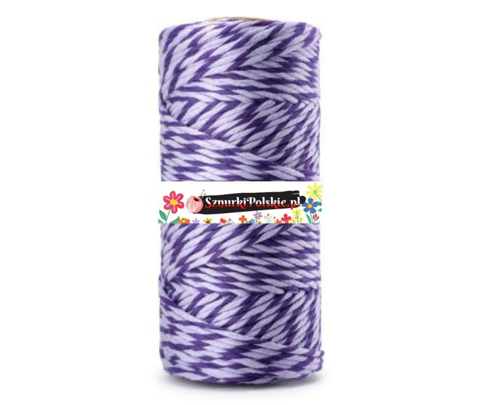 Sznurek bawełniany skręcany twist FIOLET-JASNY FIOLET 100m 3mm